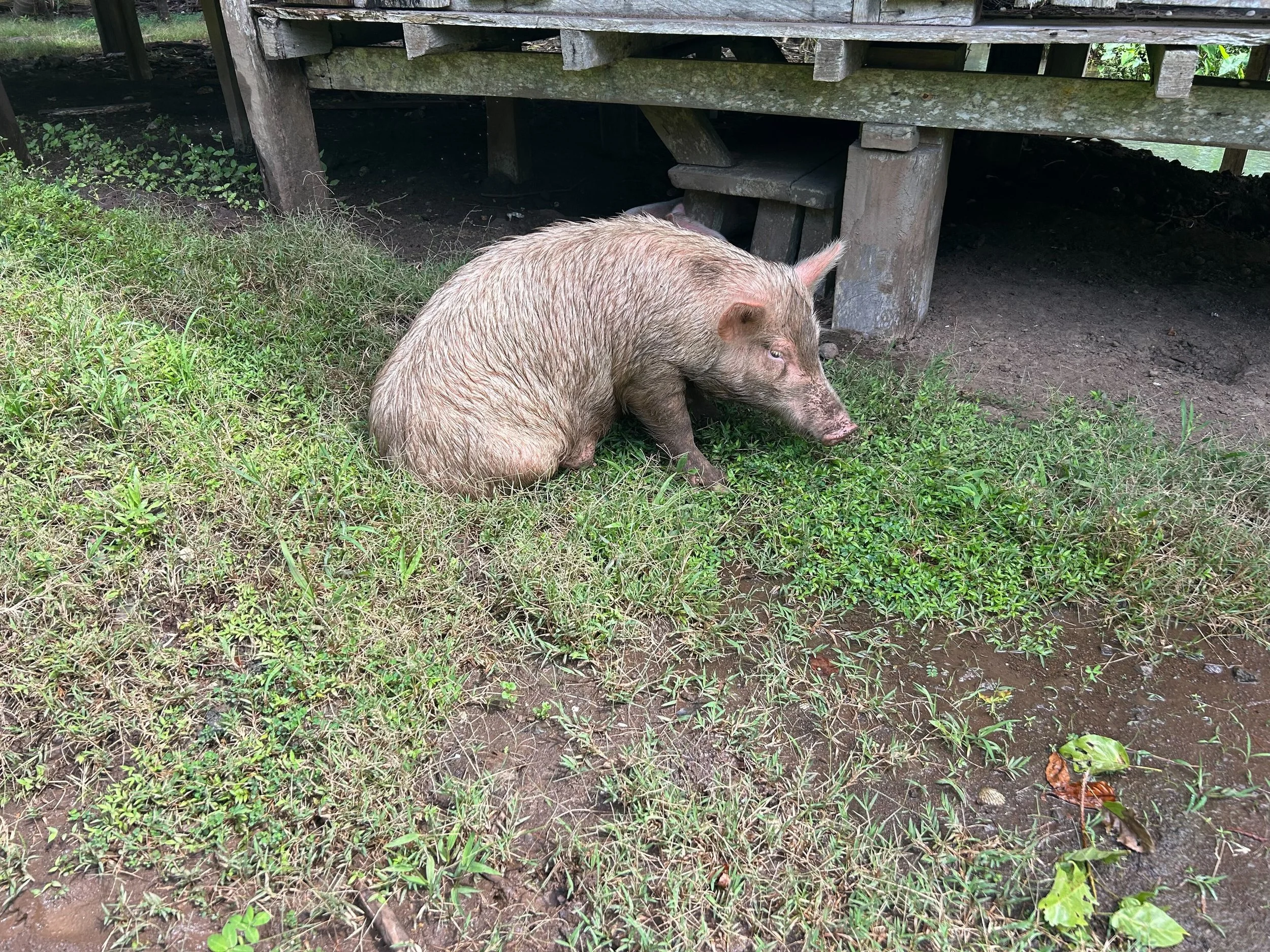 So there we were, completely soaked, moving a pig back and forth in the middle of a storm. But we did make it back safely, and so did the pig!
